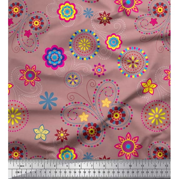 Hero image 0 of Soimoi Pink Cotton Cambric Fabric Insect & Floral Clip Art Decor Fabric Printed BTY 56 Inch Wide, 0 of 1