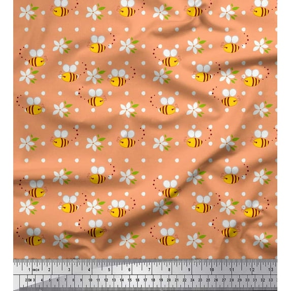 Soimoi Rayon Fabric Leaves,Floral & Honey Bee Clip Art Printed Craft Fabric by The Yard 42 Inch Wide
