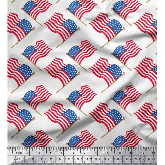 Soimoi White Rayon Crepe Fabric USA Country Flag Decor Fabric Printed Yard 46 Inch Wide