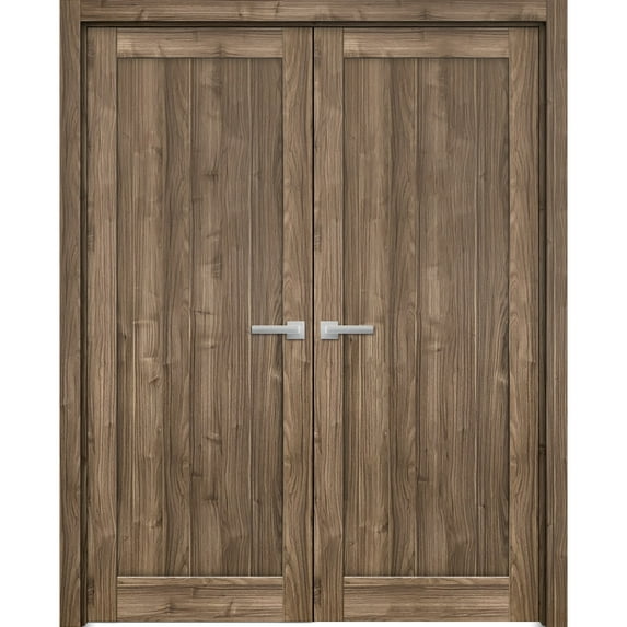 Solid French Double Doors 48 x 96 inches | Quadro 4111 Walnut | Wood Solid Panel Frame Trims | Closet Bedroom Sturdy Doors