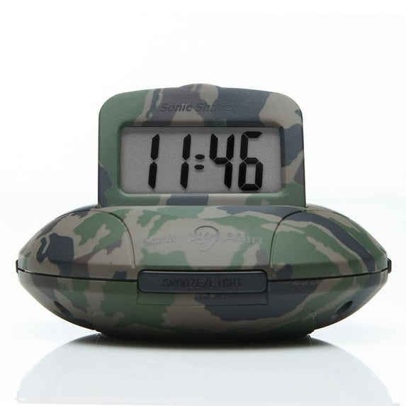 Sonic Alert - Sonic Shaker Portable Super Loud Digital Alarm Clock for Heavy Sleepers, Compact Design, Camouflage
