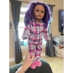 [This review was collected as part of a promotion.] I got this pajama for my daughter's doll to match with her. My daughter and her American doll will have a matching Christmas pajamas. I cannot wait to take pictures for holidays. The outfit is so very cute and the quality is amazing as always. The white slippers are very cute too and it has elastic so it's easy to put on. I'm very happy with the outfit.