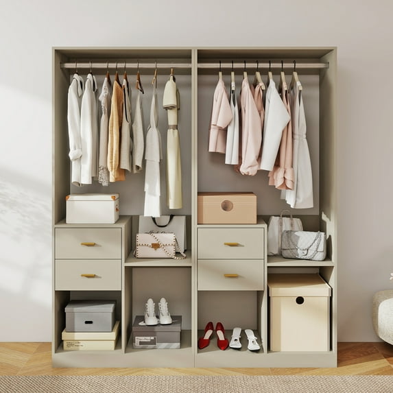 Sophshelter Free-Standing Walk-In Closet: Closet System 4 Drawers Shelves 2 Hanging Rods for Closet Organizers and Storage System Closet Racks and Shelving Closet Kit Grey 63"W x 15.7"D x 70.8"H
