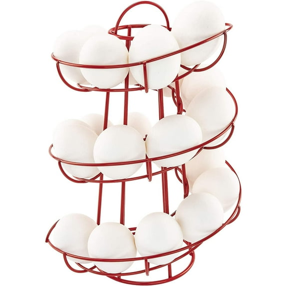 Keep your eggs organized and accessible with the Southern Homewares Deluxe Red Egg Skelter. Featuring a stylish spiraling design, this modern egg dispenser rack allows you to store eggs efficiently while ensuring they stay fresh. Its vibrant red color adds a pop of color to your kitchen, making it both functional and decorative. Perfect for easy access and maximizing kitchen space!
