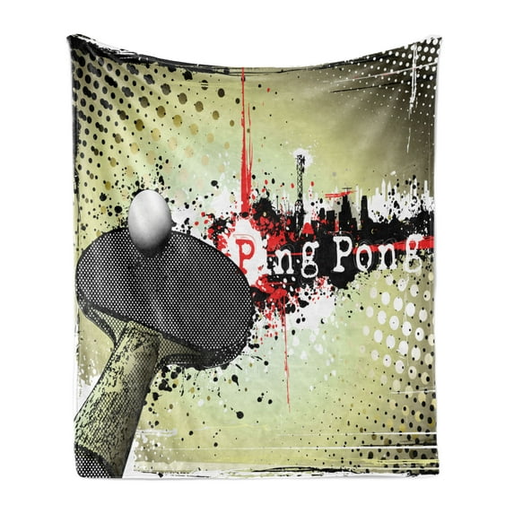 Hero image 0 of Sports Soft Flannel Fleece Blanket, Ping Pong Lettering with Grunge Splashes Ball and Racket Retro Halftone, Cozy Plush for Indoor and Outdoor Use, 50" x 60", Pale Green Multicolor, by Ambesonne, 0 of 5