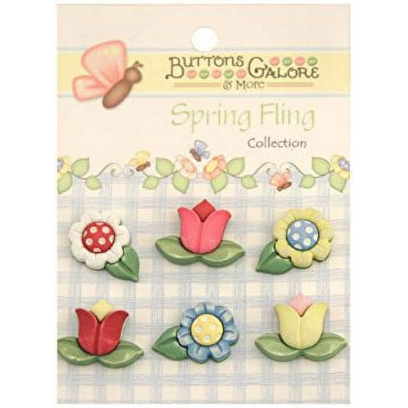 BUTTONS GALORE-Spring Fling Collection: Buttons. These cute and brightly colored buttons are fun to add to a clothing or accessory project; or as a quick decorative piece to any project. This package contains six buttons on a 3x4 inch sheet. Available in a variety of designs; each sold separately. Imported.