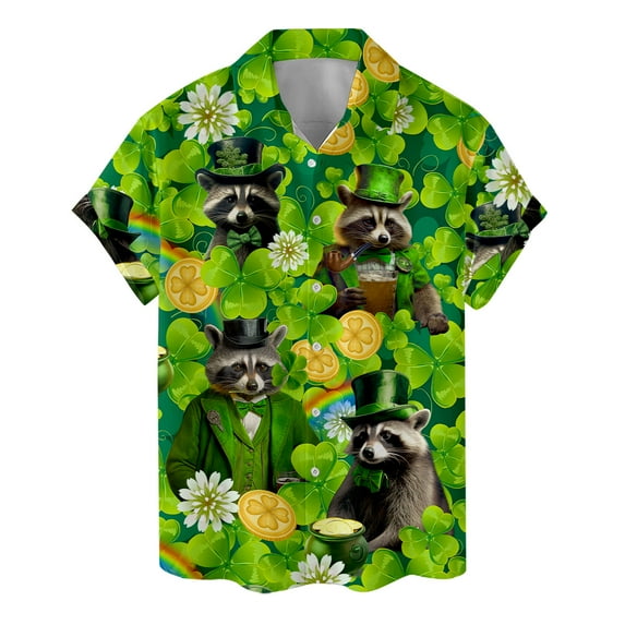 Hero image 0 of St Patrick Shamrock Raccoon Hawaiian Shirt For Men Rainbow Racoon Mens Hawaiian Shirts Short Sleeve Button Down Shirt Men, 0 of 7