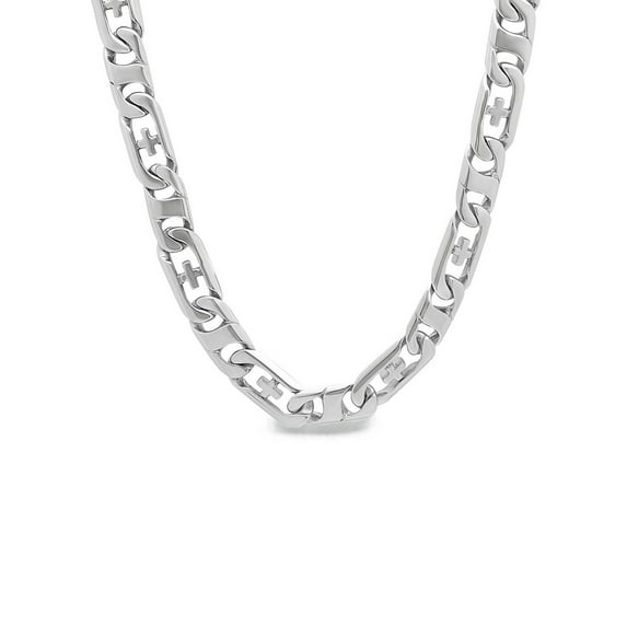 Add this Stainless Steel Curb Chain to your jewelry collection. It features an intricate design with crosses. The stainless steel chain measures 24". It can be worn every day to add unique shine to any outfit.