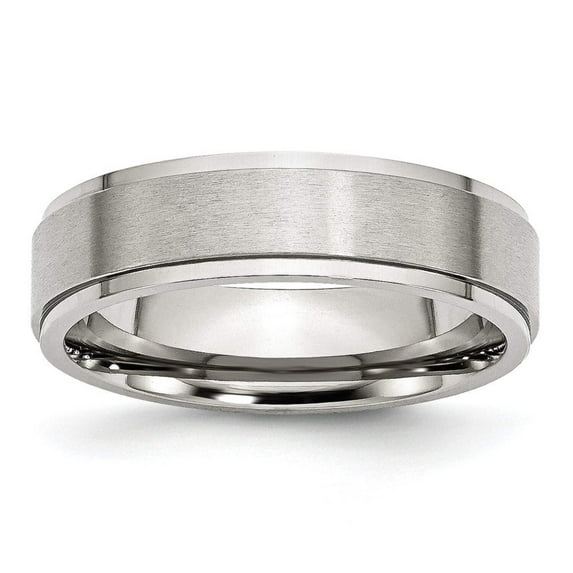 â–º Stainless Steel Brushed Polished Ridged Edge 6mm Sat/Polish Band Size 12.5 Jewelry Gift for Mom