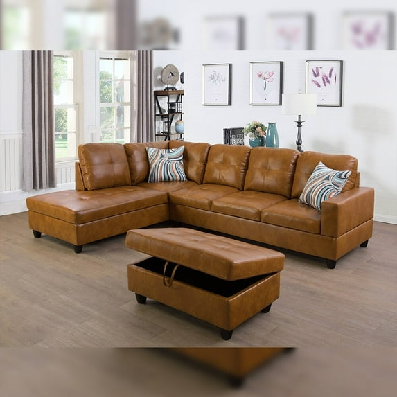 Save withShipping, arrives in 2 daysPonLiving Furniture Furniture Sectional Sofa Set, Living Room Sofa Set, Leather L Shape Sofa Left Hand Facing,Ginger ( without Storage Ottoman) $690.00