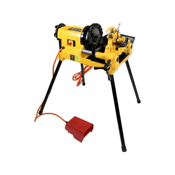 Steel Dragon Tools® 300 Compact 2in. Pipe Threader Threading Machine and Self Opening 815A Die Head compatible with RIDGID® 47770 47765 47745 47750 Dies Universal Pipe Bolt The Steel Dragon Tools® 300 Compact is a powerful, portable pipe threading machine that will thread, cut, and ream various sizes of pipes including black, galvanized, plastic-coated, stainless steel pipe, as well as IMC, and heavy-wall conduit. The Steel Dragon Tools® 300C will also thread bolts. The Steel Dragon Tools® 300C will thread pipe from 1/8 in. to 2 in. and bolts from 1/4 in. to 2 in.Specifications:The Steel Dragon Tools® 815A Die Head compatible with RIDGID® Dies (RIDGID® 47765) (RIDGID® 47770).The Steel Dragon Tools® 815A is a self-oiling, auto-open die head that will create the exact same amount of threads every time.1/4-inch to 2-inch Universal Die Head and 2-1/2-inch to 4-inch Receding Die Head will cut tapered or straight NPT and NPSM threads.Steel Dragon Tools® 360 Cutter is a roll-type cutoff, self-centering, full-floating cutter.Steel Dragon Tools® 344 Reamer is a five-flute cone, right hand only reamer for 1/8-inch to 2-inch pipe.Package Includes:Steel Dragon Tools® 300C Pipe Threading Machine Steel Dragon Tools® 815A Self-Opening Die Head Steel Dragon Tools® 360 Cutter Steel Dragon Tools® 344 Reamer Steel Dragon Tools® 47765 1/2 in. to 3/4 in. high-speed steel universal dies. Steel Dragon Tools® 47770 1 in. to 2 in. high-speed steel universal dies. *Threading oil not included.Technical Specifications:Pipe Capacity: 1/8 in. to 2 in. (3 mm-50 mm) Bolt Capacity: 1/4 in. to 2 in. (6 mm-50 mm) Motor: Universal, 1/2 HP, 115 V, 60 Hz, 38 RPM, with Reverse Includes integral foot switch. Hammer-type chuck with replaceable, rocker-action jaw inserts. Self-Oiling System: Through-head with integral oil reservoir, self-priming, constant-flow, gear-drive pump. Included equipment fits RIDGID® machines and parts.Overall Weight: 220 lbs. (100 kg) Overall Dimensions: 36 in. x 18 in. x 18 in.To ensure optimal performance and longevity of your pipe threading machine, we recommend greasing and/or lubricating your machine upon arrival and regularly greasing and/or lubricating all moving parts, especially the threading dies and carriage mechanisms. Proper greasing and/or lubrication minimizes wear, reduces friction, and enhances overall machine efficiency. Heavy use of your machine may require more frequent greasing and/or lubrication.WARNING: This product can expose you to chemicals including Carbon Black, and Glass Wool Fibers which are known to the State of California to cause cancer. This product is designed and manufactured by Steel Dragon Tools®. RIDGID® marks are trademarks of RIDGID, Inc and are used only for product identification purposes.Steel Dragon Tools® products are backed by a one (1) year warranty against manufacturer defect.