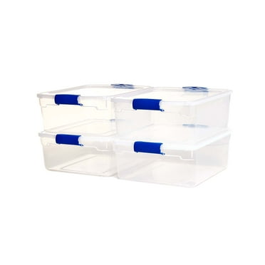Hart 27 Gallon Heavy Duty Plastic Storage Tote, Black with Blue Lid, Set of 4
