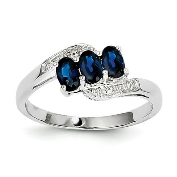 Sterling Silver Rhodium Sapphire and Diamond Ring - Size 8 - Measures 2mm Wide - .01 Carat Diamond Weight 1.05 Carat Gemstone Weight in Sterling Silver - Product Attributes: - Open back - Polished - - Band Width: 2 mm - Width of Item: 2 mm - Finish: Polished - Feature: Solid - ::: ::: [ Care and Handling: diamond ] - Clean with warm soapy water and a soft brush or cloth. ::: ::: [ Potential Enhancement Methods: sapphire ] - Usually heated to improve appearance. Occasionally irradiated. Commonly diffused along with heat application to create different colors. Yellow sapphire is always diffused. ::: [ Care and Handling: sapphire ] - Avoid strong detergents, heat, pressure and ultrasonic cleaner or steamer. Avoid re-polishing or re-cutting of the stone. Color may fade in light or with heat. Clean with warm soapy water and a soft brush or cloth. :::WELCOME To Jewelry Web Fine Jewelry Gifts Offering; 925 Silver rings in Sterling Silver ; Width: 2MM ; Hypoallergenic ; Nickel Free ; Open back ; Polished