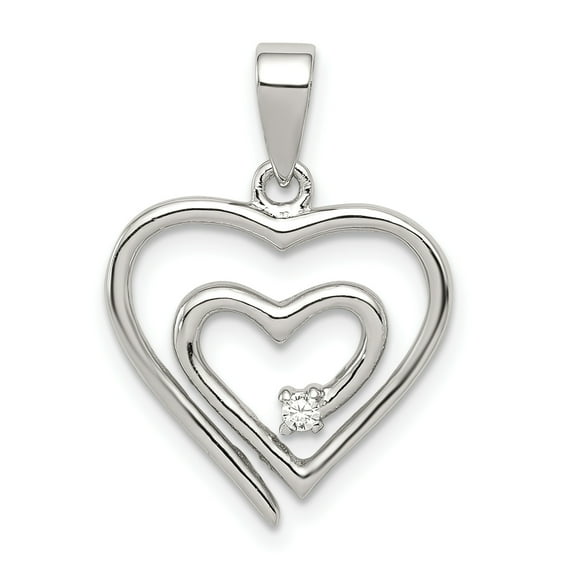 Sterling Silver Single Cubic Zirconia Heart Pendant - Measures 23mm long - in Sterling Silver - Product Attributes: - Polished - Polished back - Solid - - Charm/Element Width: 17 mm - Width of Item: 17 mm - Charm/Element Length: 15.8 mm - Length of Item: 23 mm - Finish: Polished - - This item does not include a chain - [ Potential Enhancement Methods: cubic zirconia ] - Synthetic. Some are covered with a product that makes the stone more durable. - [ Care and Handling: cubic zirconia ] - Clean with warm soapy water and a soft cloth. -WELCOME To Jewelry Web Fine Jewelry Gifts Offering; 925 Silver pendants in Sterling Silver ; Width: 17MM ; Height: 15.8MM ; Hypoallergenic ; Nickel Free ; Polished ; Polished back ; Solid