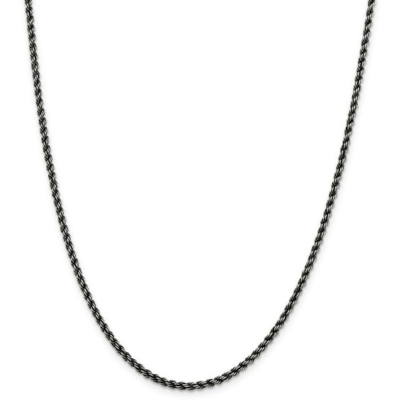 Sterling Silver Ruthenium 2.5mm Rope Chain Necklace - 20 Inch - 11.0 Grams in Sterling Silver - - Width of Item: 2.9 mm - Length of Item: 20 in - Chain Length: 20 in - Chain Width: 2.9 mm - Clasp /Connector: Lobster - Finish: Antiqued - Chain Thickness: 2.5 mm - Chain Type: Rope - Feature: Solid - Clasp Width (Male end): 4.33 mm - Clasp Width (Female end): 2.91 mm -WELCOME To Jewelry Web Fine Jewelry Gifts Offering; 925 Silver chain necklaces in Sterling Silver ; Width: 2.9MM ; Hypoallergenic ; Nickel Free