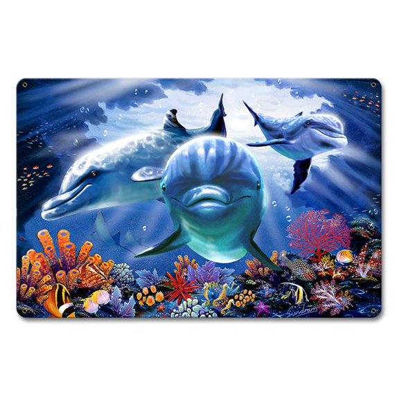 Steve Sundram Art SUN076 12 x 18 in. Dolphin Cave Satin Metal Sign