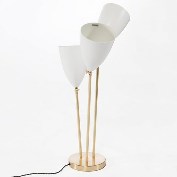 A cluster of three adjustable, conical metal shades give this Stilnovo The Ambu Table Lamp its retro charm. Contrasting gold finished stems and a disk base add a hint of glamour to this table lamp. It requires three 60-watt bulbs (not included).