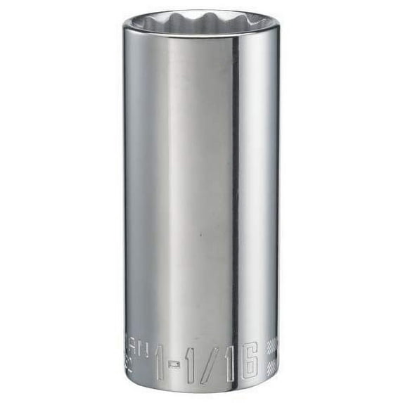 1/2-inch Drive 1-1/16-inch 12-Point SAE Deep Socket features a deep well construction and internal construction designed to engage with the flats of fasteners. This allows for the user to reach those hard to reach fasteners and torque without the fear of stripping a bolt.