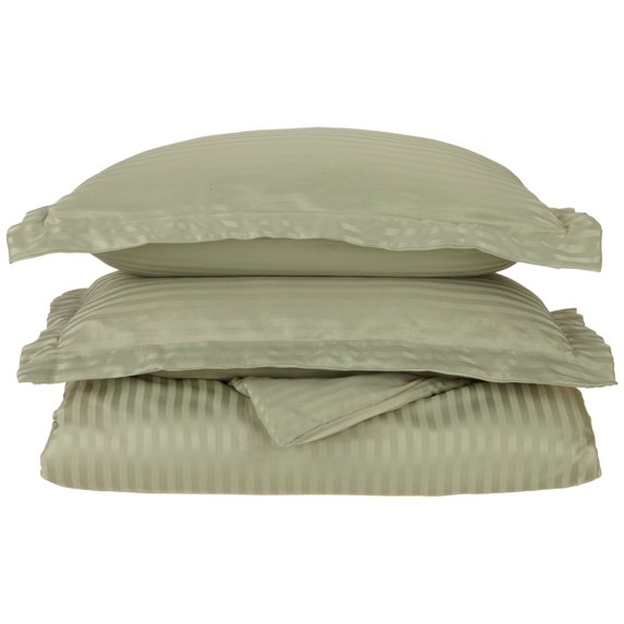 Striped Duvet Cover Set, Soft Wrinkle Free Microfiber, Full/Queen, Sage