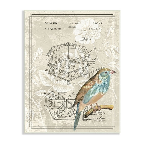 Hero image 0 of Stupell Industries Vintage Bird House Patent Design Figure Eastern Bluebird, 13 x 19, Design by Daphne Polselli, 0 of 6
