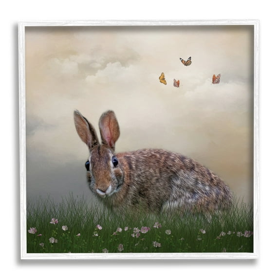 Stupell Spring Rabbit Meadow Butterflies Animals & Insects Photography White Framed Art Print Wall Art