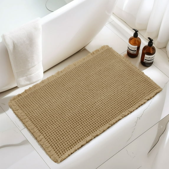 Subrtex Waffle Weave Bathroom Rug, Non Slips Bath Mat, Absorbent Bathmat Bath Rug for Bathroom (24"x36", Khaki)