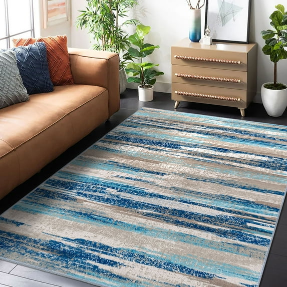 Suelur 5x7 Rugs for Living Room Washable Abstract Area Rugs Non-Slip Soft Bedroom Rugs with Rubber Backing Low Pile Print Blue Rugs Floor Carpet for Dining Room Home Office