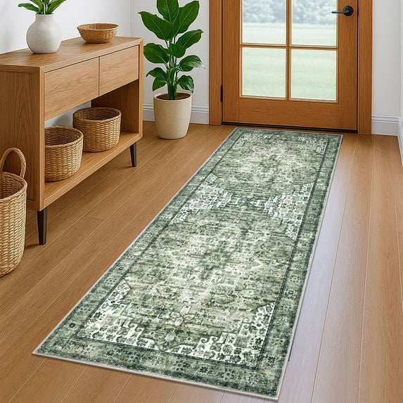 Hero image 0 of Suelur Runner Rugs 2x6 Green Runner for Hallways Non-Slip Washable Kitchen Runner with Rubber Backing Soft Printed Distressed Medallion Floor Carpet Runner for Laundry Bedroom Entryway, 0 of 9