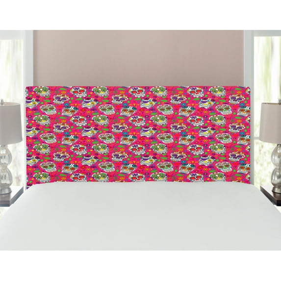 Sugar Skull Headboard, All Saints Day Oriental Mexican Flowers Hearts Vibrant Design Print, Upholstered Decorative Metal Bed Headboard with Memory Foam, Full Size, Hot Pink Purple Green, by AmbesonneSugar Skull Headboard All Saints Day Oriental Mexican Flowers Hearts Vibrant Design Print Upholstered Decorative Metal Bed Headboard Memory Foam FullSugar Skull Headboard All Saints Day Oriental Mexican Flowers Hearts Vibrant Design Print Upholstered Decorative Metal Bed Headboard Memory Foam Twin