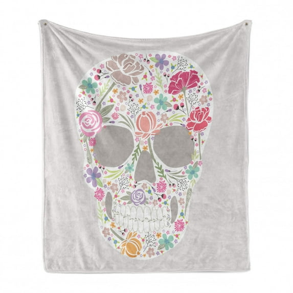 Hero image 0 of Sugar Skull Soft Flannel Fleece Throw Blanket, Day of the Dead Theme Florally Ornamented Petals and Leaves, Cozy Plush for Indoor and Outdoor Use, 60" x 80", Multicolor, by Ambesonne, 0 of 6