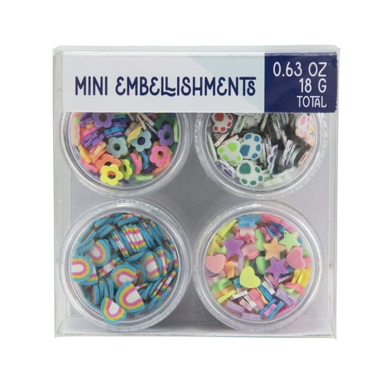 - Assorted Colors: The 4-pack set includes 4 jars of assorted, colorful miniature embellishments.
