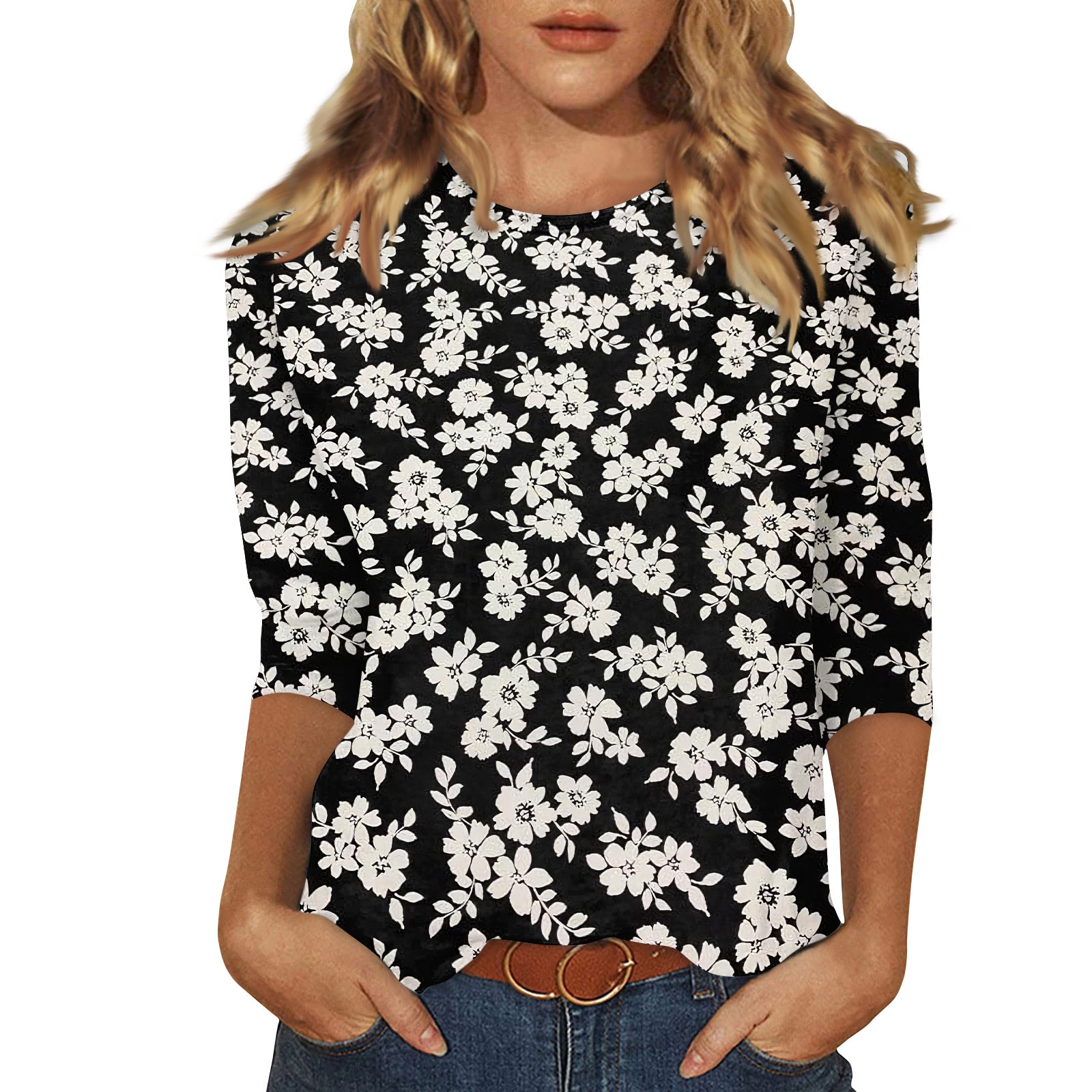 Hero image 0 of Summer Tops for Women 2024 Trendy 3/4 Sleeve Oversized Tshirts Floral Print Graphic Tees Dressy Casual Plus Size Blouses Half Sleeve Tunic Tshirt Going Out Tops, 0 of 5