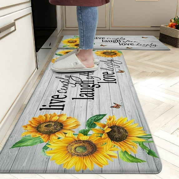 Hero image 0 of Sunflower Farmhouse Kitchen Rugs 0.4 Inch Thick Anti Fatigue Cushioned Kitchen Mat Set of 2 Non Skid Washable Memory Foam Kitchen Mats for Standing, Laundry, Office, 17.3x28+17.3x47 Inch, 0 of 6
