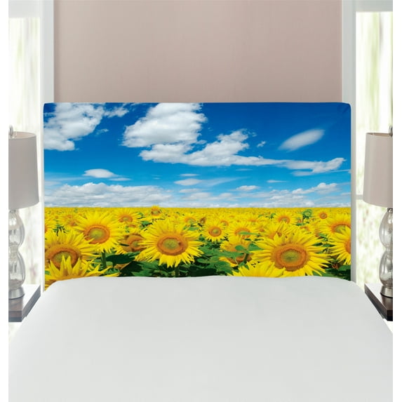 Sunflower Headboard, Fresh Sunflowers Field Under Clear Sky Clouds Countryside Farm Picture, Upholstered Decorative Metal Bed Headboard with Memory Foam, Twin Size, Blue Green Yellow, by AmbesonneSunflower Headboard Fresh Sunflowers Field Under Clear Sky Clouds Countryside Farm Picture Upholstered Decorative Metal Bed Headboard Memory Foam TwiSunflower Headboard Fresh Sunflowers Field Under Clear Sky Clouds Countryside Farm Picture Upholstered Decorative Metal Bed Headboard Memory Foam Ful