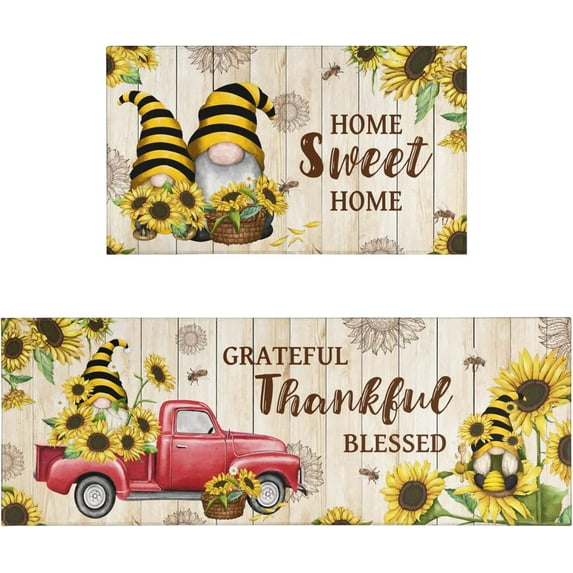 Hero image 0 of Sunflower Kitchen Rugs Sets of 2 Cute Gnome Yellow Summer Kitchen Rug Mat Washable Non-Slip Kitchen Mats for Floor 2 Piece Sunflower Kitchen Decor, 0 of 6