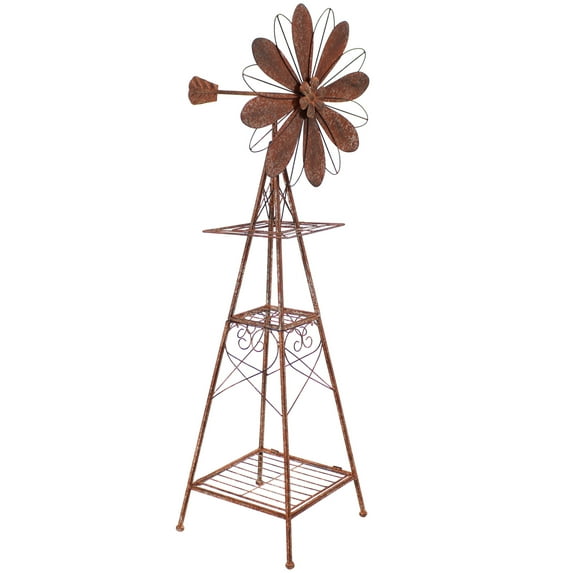 This rustic, distressed metal outdoor windmill is the perfect decoration to add to any garden, patio, porch, yard, or any other outdoor space in need of a classic addition. The windmill, with its unique wire design, is constructed with rust-resistant iron for a long-lasting outdoor decoration. While durable, this windmill remains lightweight so you can move and display it anywhere. The windmill itself spins quietly and gently with the wind as well, creating a peaceful environment wherever placed. This charming and friendly piece will delight all guests and add a rural style to any setting. This windmill also features scalloped heart details in the iron on the body, emphasizing its fun, wholesome design. Add items to the bottom shelf or display the beautiful design as it is! Featuring a rustic, copper and brown metallic color scheme, this windmill is sure to complement any modern or farmhouse aesthetic effortlessly with its classic, elegant style.