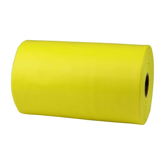 Sup-R Band Latex-Free Exerciser Rolls are perfect for rehabilitation, fitness, physical therapy and athletic training. Additionally, they are great for anyone using them for stretching, muscle toning, improving balance and conditioning all major muscle groups. Packaged in a dispenser box, simply unroll the desired length of exercise band from the box and cut with scissors. The Sup-R Exercise Band is the premium exercise band solution, being Latex-free while still providing all the functionality and benefits of a band with Latex. So versatile, these bands are super for upper and lower body exercises that are simple, easy to do and can be performed anywhere. Lightweight, compact and portable, the TPE Latex-free mimics the stretch, contraction and strength characteristics of a Latex band. The high quality and superior characteristics of these bands are why they are used in physical therapy and athletic training by clinics, fitness centers and individuals nationwide. This is a 25-yard roll of the Yellow (X Light) Band. Exercise bands are effective when used alone or with handles and anchors. Made with Thermoplastic Elastomer, which gives the bands the same tear and burst strength as a Latex-band. They are a well-known staple of most physical therapy offices, clinics and gyms because they are durable and textured for easy gripping. The 25-yard rolls can be used in all dispenser systems/racks. Bands are available in 8 levels of resistance for progressive exercise. Levels range in order of strength from least to greatest resistance: tan, yellow, red, green, blue, black, silver, gold.