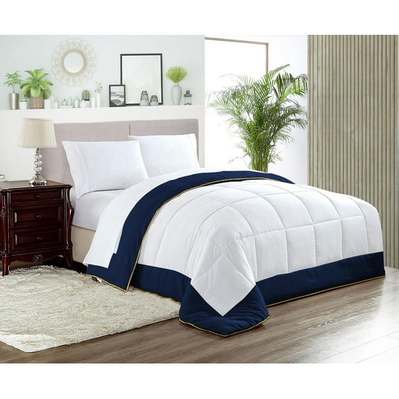 Hero image 0 of Super King Comforter Dual Tone Navy Blue Luxurious Collection Microfiber Fill Duvet Insert Box Stiched Quilted Fluffy Soft All Season Comforter with Pillowcases & Premium Piping, 0 of 7