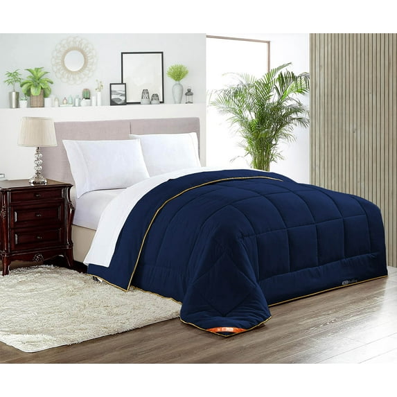 Hero image 0 of Super King Plus Comforter Solid Navy Blue Luxurious Collection Microfiber Fill Duvet Insert Box Stiched Quilted Fluffy Soft All Season Comforter with Pillowcases & Premium Piping, 0 of 7