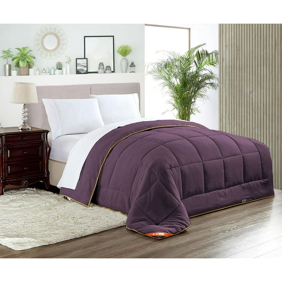 Hero image 0 of Super King Plus Comforter Solid Plum 300 GSM Plush Siliconized Microfiber Fill Duvet Insert With 1000 Thread Count Egyptian Cotton Shell Fluffy Soft with Premium Piping & Matching Pillowcases, 0 of 8