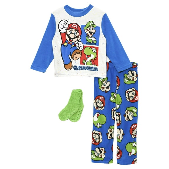 Super Mario Boys 3 Piece Pajama With Socks, With Socks, Size: 10, Super Mario Bros.