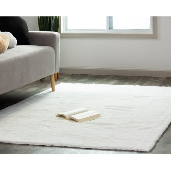 Super Soft Faux Rabbit / Mink Fur Solid Area Rug SAR-JUT01-BLK-3X5 Black