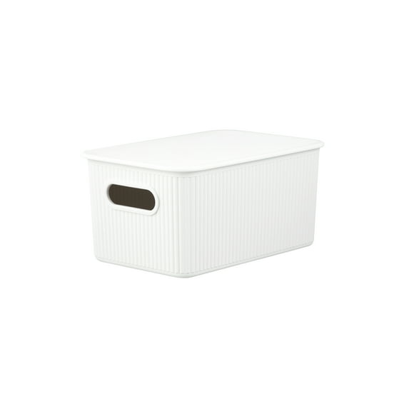 $2699current price $26.99Superio 5L Small White Smoke Ribbed Storage Bin with Lid, Plastic Storage Basket