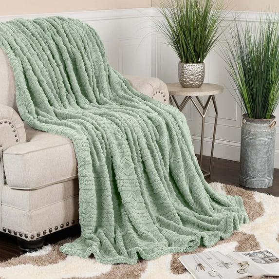 Superior Arctic Fleece Boho Knit Jacquard Blanket, Throw, Sea Foam