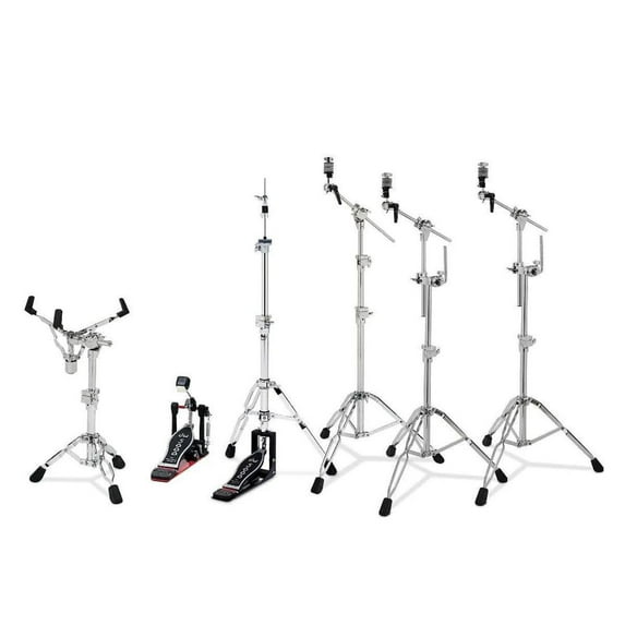 The DW 5000PK5 Pack is the perfect complement to any 5-piece acoustic or electronic kit. Includes a DW 5000AD4 dual chain drive bass drum pedal, heavy-duty 5500TD 2-leg rotating hi-hat stand, 5300 offset snare drum stand, 5700 straight/boom cymbal stand and two 5791 combo tom/cymbal stands.