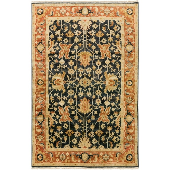 The Taj Mahal Collection showcases traditional inspired designs that exemplify timeless styles of elegance, comfort, and sophistication. With their hand knotted construction, these rugs provide a durability that can not be found in other handmade constructions, and boasts the ability to be thoroughly cleaned as it contains no chemicals that react to water, such as glue. Made with NZ Wool in India, and has Medium Pile. Spot Clean Only, One Year Limited Warranty.FeaturesConstruction: Hand KnottedCollection: Taj MahalStyle: TraditionalShape: SquareColor: Black, Burnt Orange, Tan, Wheat, CamelMaterial: 100% NZ WoolPile Height: 0.39Product Size: 8' SquareMade In India