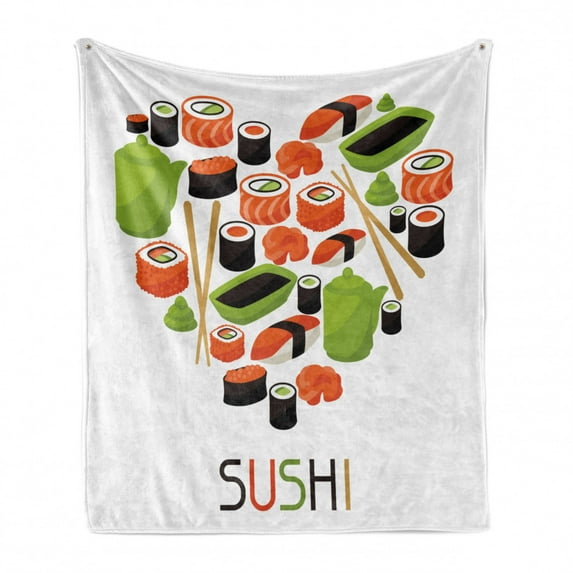 Sushi Soft Flannel Fleece Throw Blanket, Teapot Tobiko Roll Wasabi and Soy Sauce Arranged in Heart Shape Artwork, Cozy Plush for Indoor and Outdoor Use, 60" x 80", Multicolor, by AmbesonneSushi Soft Flannel Fleece Throw Blanket Teapot Tobiko Roll Wasabi Soy Sauce Arranged Heart Shape Artwork Cozy Plush Indoor Outdoor Use 60 x 80 MulticSushi Soft Flannel Fleece Throw Blanket Teapot Tobiko Roll Wasabi Soy Sauce Arranged Heart Shape Artwork Cozy Plush Indoor Outdoor Use 50 x 70 MulticSushi Soft Flannel Fleece Throw Blanket Teapot Tobiko Roll Wasabi Soy Sauce Arranged Heart Shape Artwork Cozy Plush Indoor Outdoor Use 50 x 60 MulticSushi Soft Flannel Fleece Throw Blanket Teapot Tobiko Roll Wasabi Soy Sauce Arranged Heart Shape Artwork Cozy Plush Indoor Outdoor Use 70 x 90 Multic