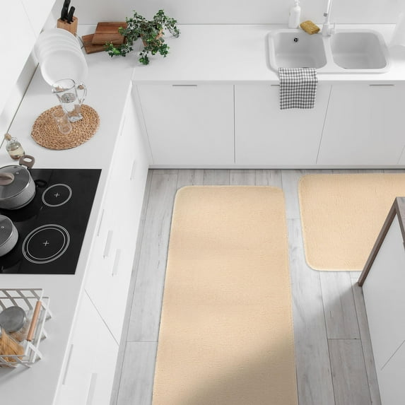 GALMAXS7 Kitchen Rugs and Mats 2 Piece Non Skid Kitchen Mats Washable Kitchen Floor Mats 20"x32"+20"x47",Beige $29.99 Was $49.99