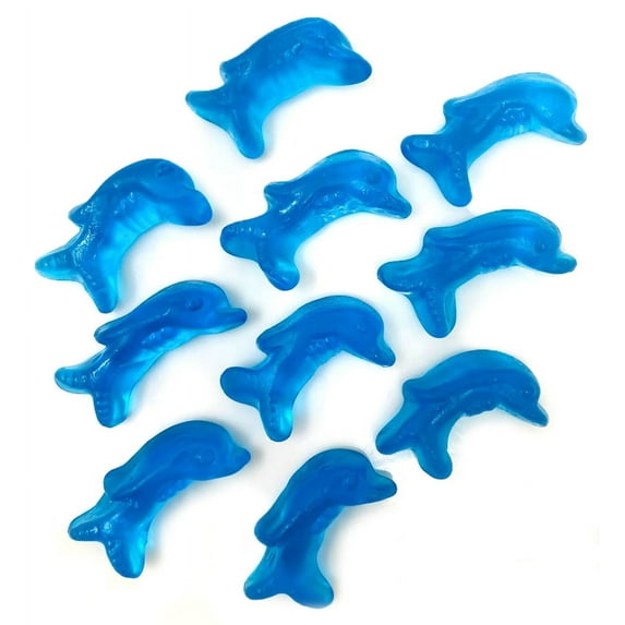 These are a large blue raspberry fruit flavored firm chewy gummy candy. Try our blue raspberry dolphins. A great chewy fun seaside shape for your next pool party.