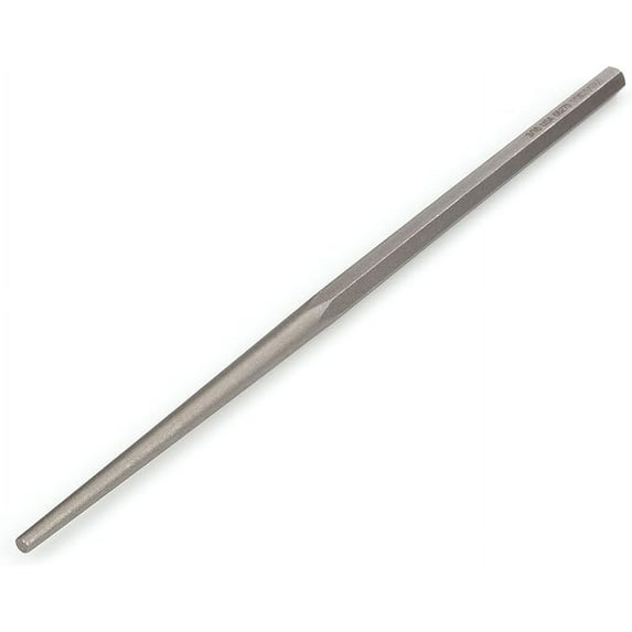 TEKTON 3/16 Inch Long Alignment Punch | 66275 To align pieces for accurate assembly, fastening, or welding, drive the TEKTON 3/16 inch Long Alignment Punch through holes in two or more parts. Its gradually tapered self-centering nose creates the mechanical advantage to position even heavy parts with smooth control. At 12 inches long, it offers extra leverage and extended reach through thick pieces or past obstructions and provides the room for a two-handed grip when needed. The tip and tapered shaft are precisely machined to meet exacting size tolerances, ensuring they are straight and true. Made from premium high-carbon steel, each punch is individually heat treated creating a strong, hardened tip while keeping the soft temper of the striking end, allowing it to absorb hammer blows without chipping. Features : - A gradually tapered self-centering nose aligns holes in multiple parts, positioning them for accurate assembly - Made from premium high-carbon steel - Straight and true, the tip and taper are precisely machined to meet exacting tolerances - Individual heat treatment allows careful control of tip hardness and temper of striking end - Classic natural finish has a dry-touch rust-preventative coating - - - 0.34 Pounds 12 x 0.4 x 0.4 inches